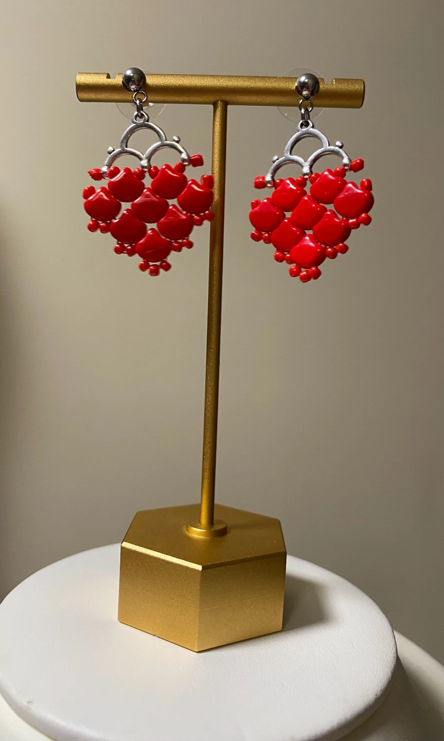 Bright crayon red dragon scale earrings are just the hint of spice that your outfit needs. Oh so smooth to the touch, fine Czech glass dragon scales are stitched with soft Toho bead thread and matching Czech Preciosa Ornela seed beads.